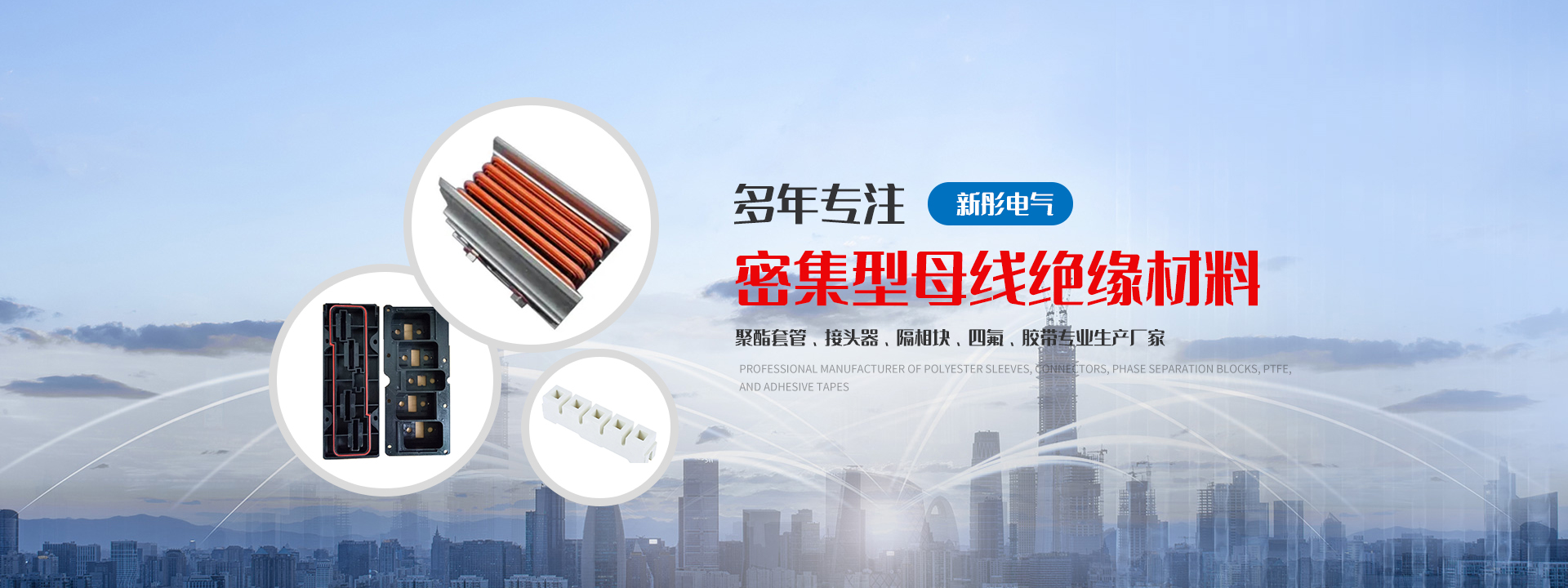 揚中市新彤電氣有限公司是專業生產密集型母線絕緣材料—聚酯套管、接頭器、隔相塊、四氟、膠帶的專業生產廠家。